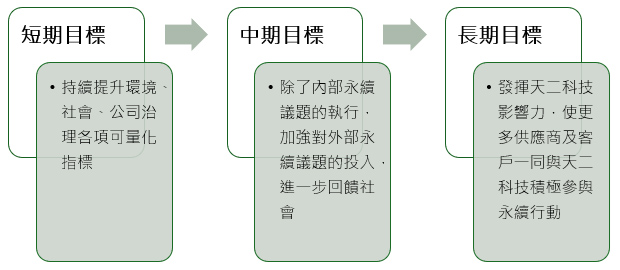 公司努力推动并落实企业永续发展,全面推动并落实环境(E)、社会(S)及公司治理(G)三大面向之管理,透过具体行动回应市场挑战,善尽企业社会责任,以实现长远的永续发展愿景,并成立永续发展委员会,制定「永续资讯之管理作业」及「永续报告书编製及验证作业程序」,藉由管理办法及程序的制定,将永续理念具体落实于营运活动中。